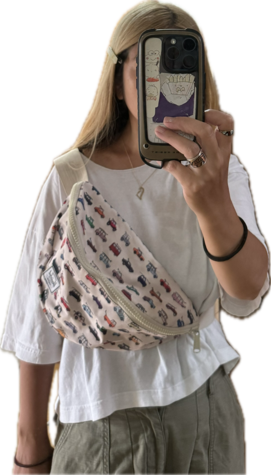 からハーシェルの車柄のウエポを斜め掛けにしてバランスよく。