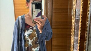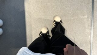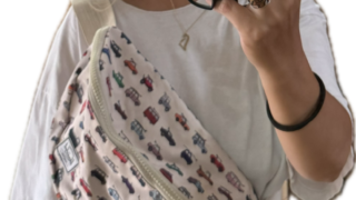 秋らしいヘアーアクセサリーとスニーカーのコーディネート